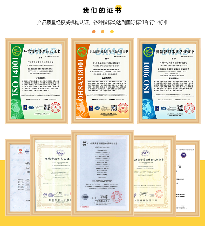 固性及美觀性;②表面采用物理機(jī)械除銹,既除銹又增加器材表面積,為加強(qiáng)后續(xù)工序塑粉吸附能力奠定了基礎(chǔ),這是酸洗除銹不可比擬的優(yōu)勢(shì);③靜電噴塑,先進(jìn)的靜電噴塑設(shè)備采用高級(jí)環(huán)保塑粉,對(duì)器材表面進(jìn)行噴塑處理,確保器材5年不退色,品質(zhì)優(yōu)于同類(lèi)烤漆產(chǎn)品;④全部產(chǎn)品嚴(yán)格按照國(guó)家標(biāo)準(zhǔn)——《健身器材安全通用要求》進(jìn)行設(shè)計(jì)生產(chǎn),在生產(chǎn)過(guò)程中嚴(yán)把質(zhì)量關(guān),追求產(chǎn)品零缺陷。