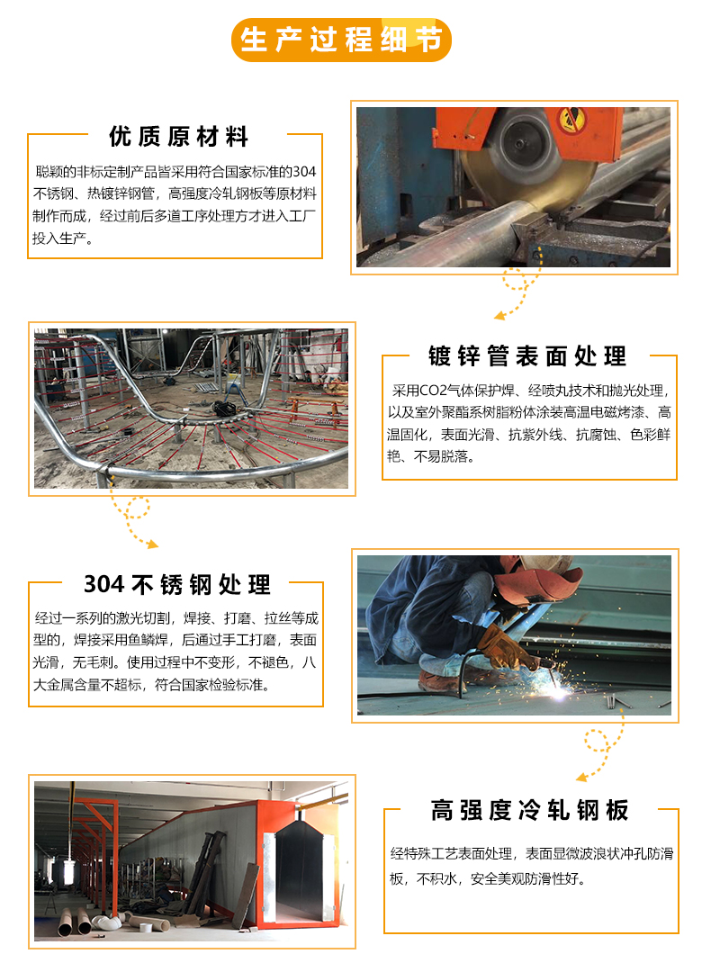 3)器材工藝:①采用先進(jìn)的二氧化碳保護(hù)焊,焊接強(qiáng)度較普通焊接更高,確保焊接部位的堅(jiān)